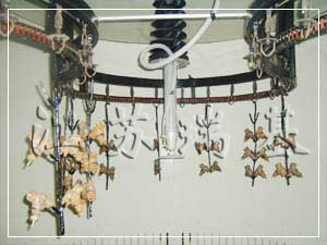 涂裝生產線是通過輸送設備來實現的連續生產,因此它在涂裝生產線上廣泛被采用.通常用的輸送設備有:懸擺式輸送鏈,電軌懸掛輸送鏈,滑橇式地面輸送鏈,普通和輕型懸掛輸送鏈,普通和輕型積放懸輸送鏈,地面積放輸送鏈,反向積放輸送鏈等.汽車涂裝線的前處理、電泳生產線,一般采用積放鏈、普通懸鏈、電軌小車等;中涂、面漆采用滑橇式地面輸送鏈或其它形式的地面輸送設備。對于摩托車、家電或其它工件,可采用普通和輕型積放懸掛輸送鏈。對懸掛輸送鏈,為防止鏈條油污等污染懸鏈上的工件,常采用集油盤和“C”型吊具。